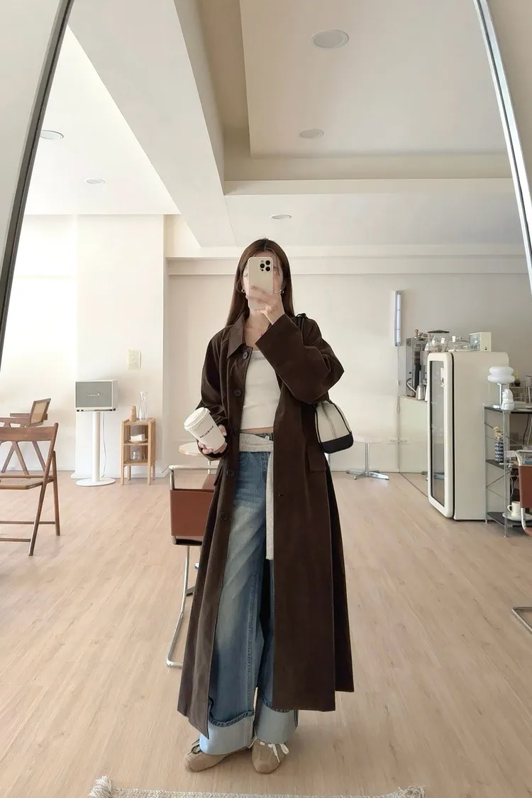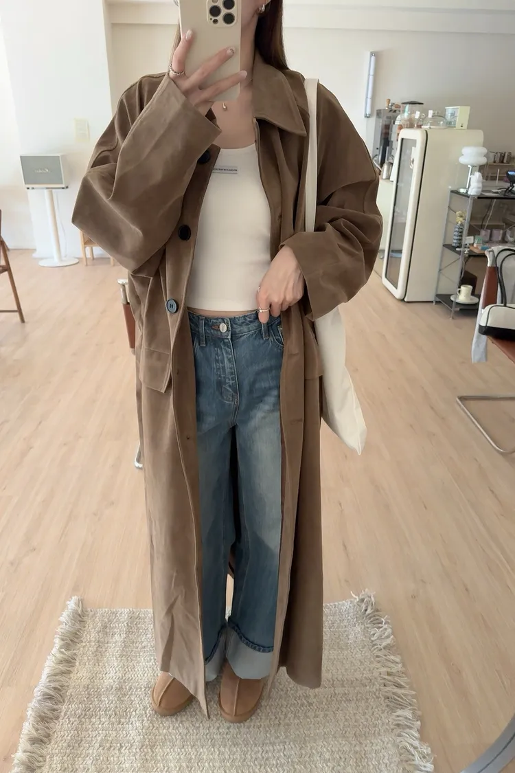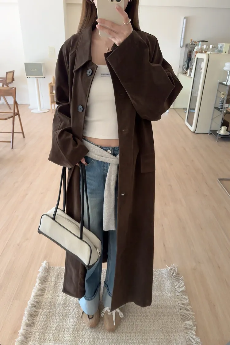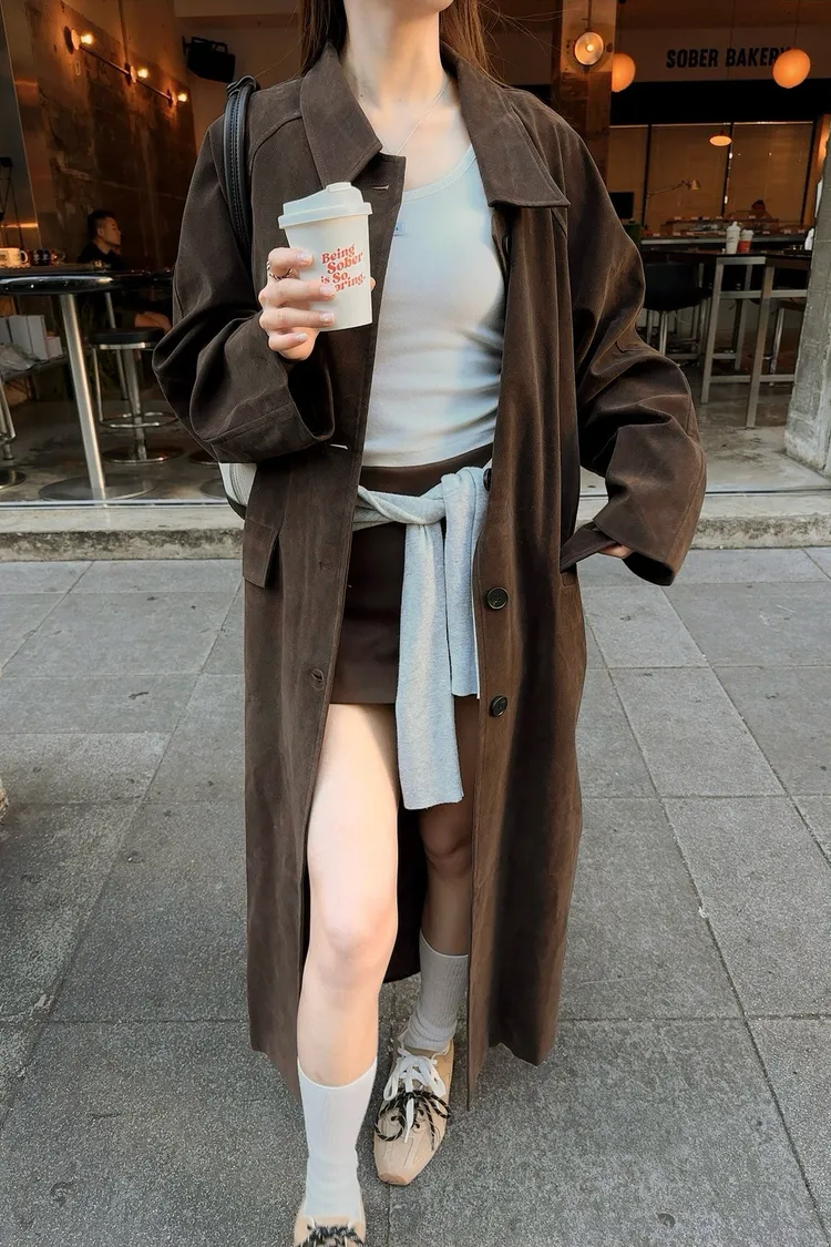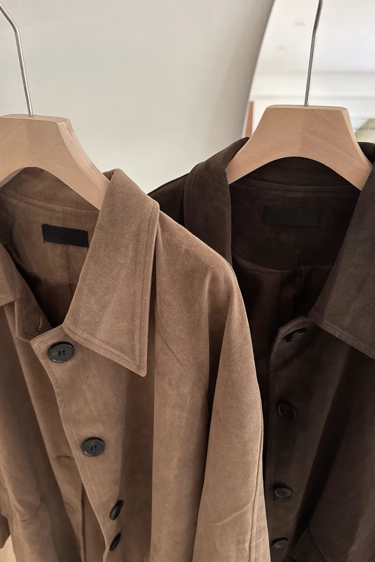 秋𝐧𝐞𝐰🍂入秋必備!仿麂皮風衣外套,棕/深咖(現貨)