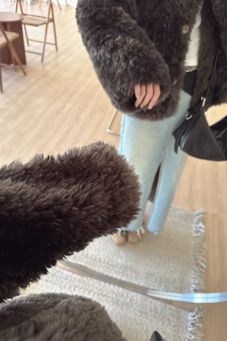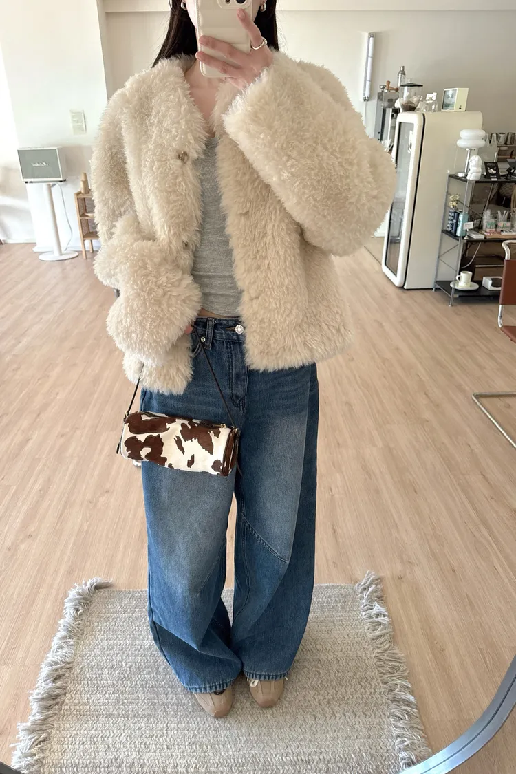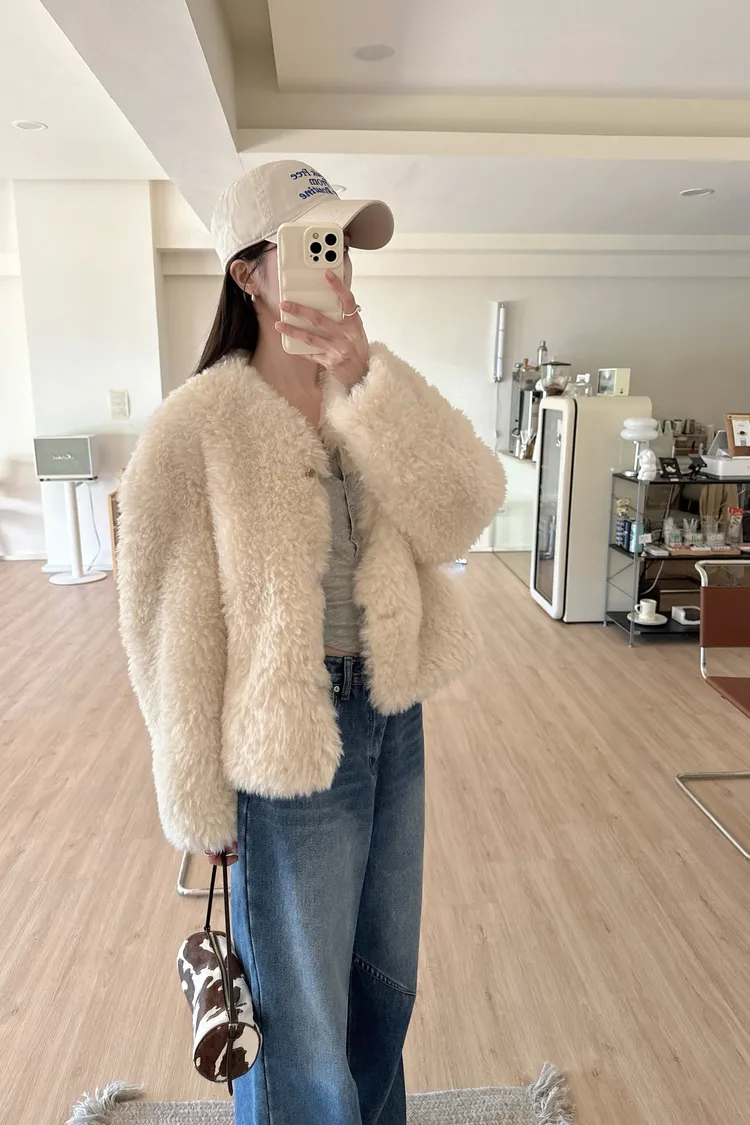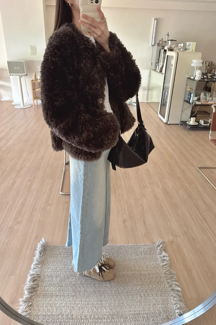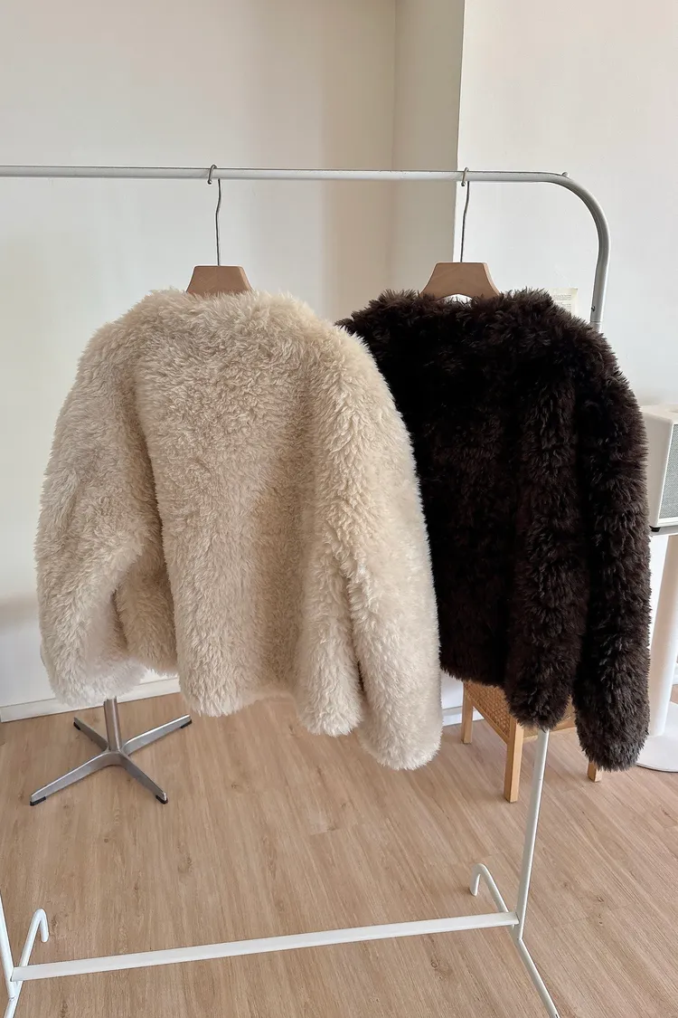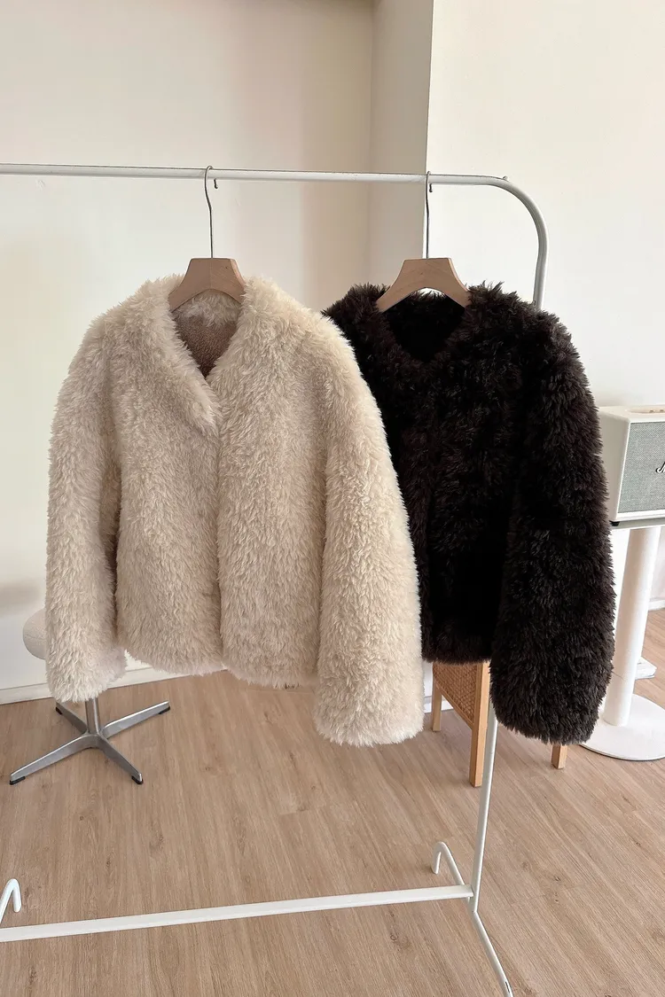 冬𝐧𝐞𝐰🍁無領毛毛外套,米/深灰