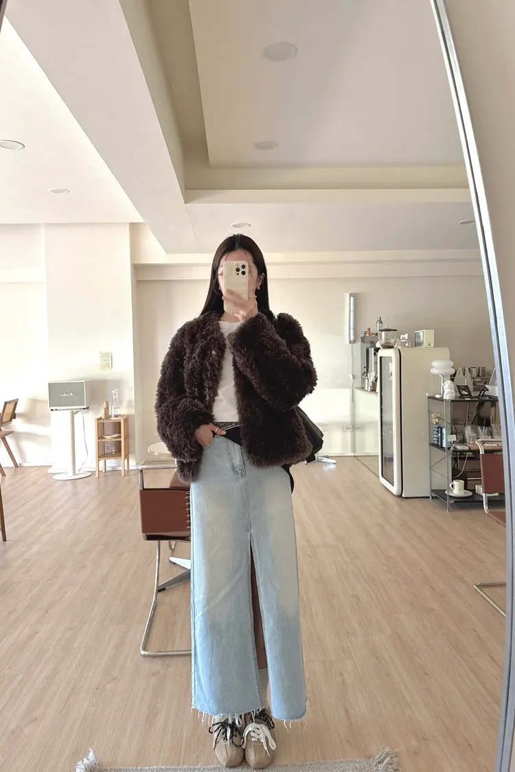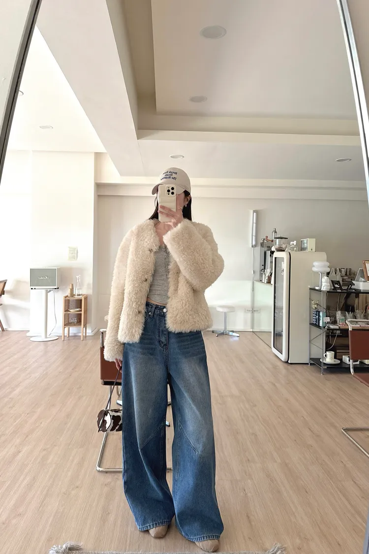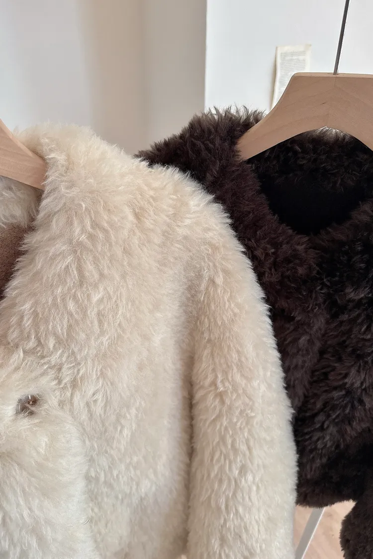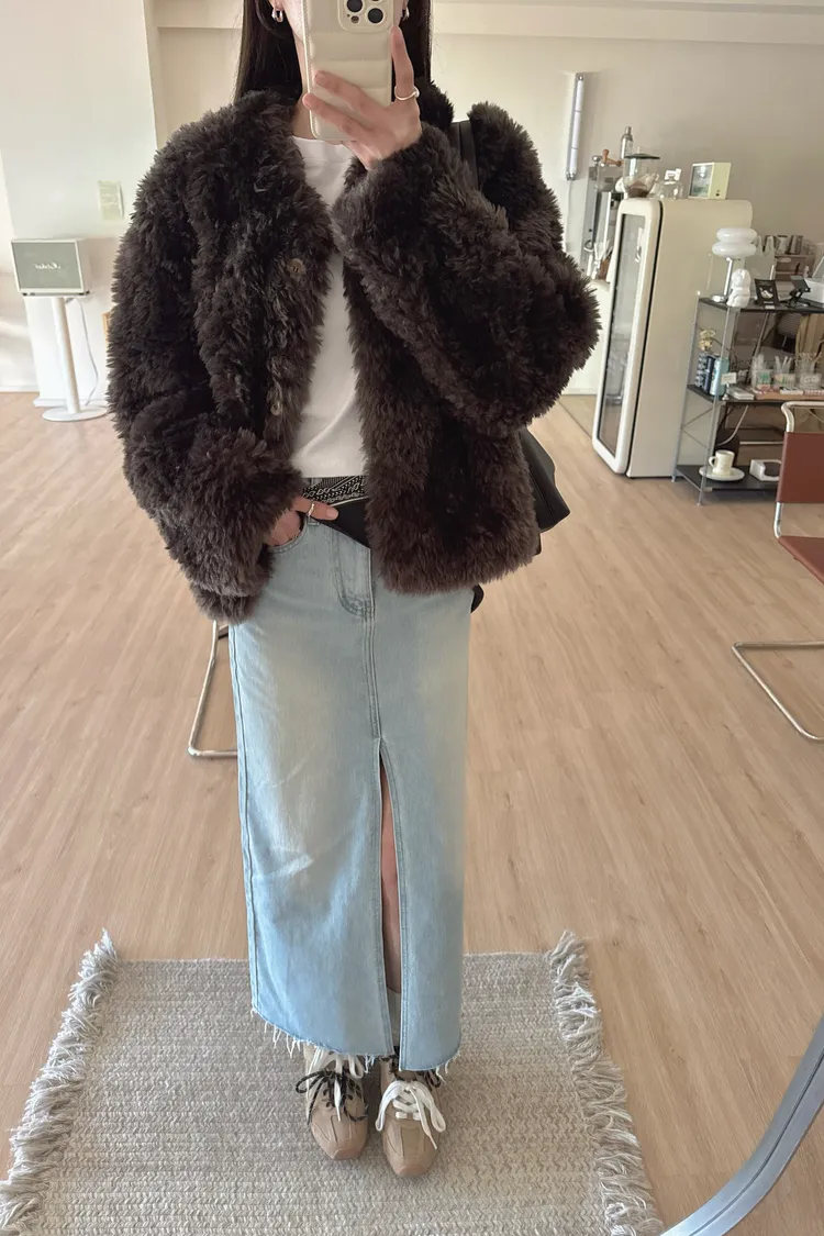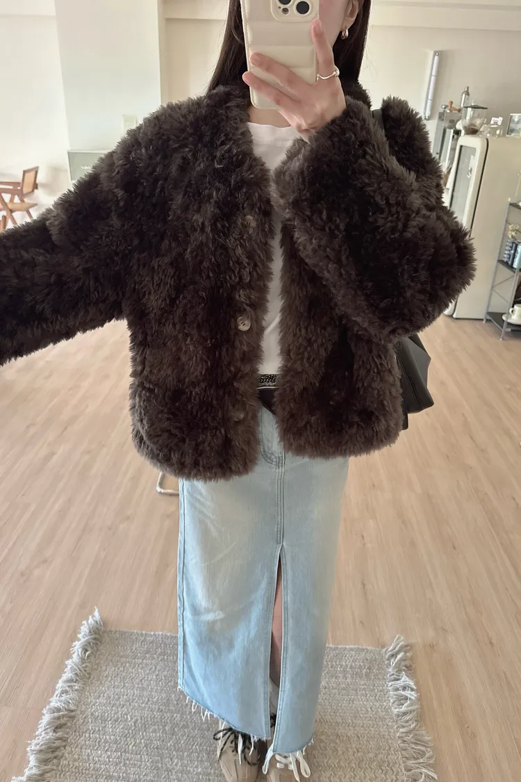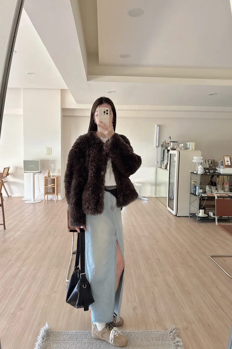 冬𝐧𝐞𝐰🍁無領毛毛外套,米/深灰