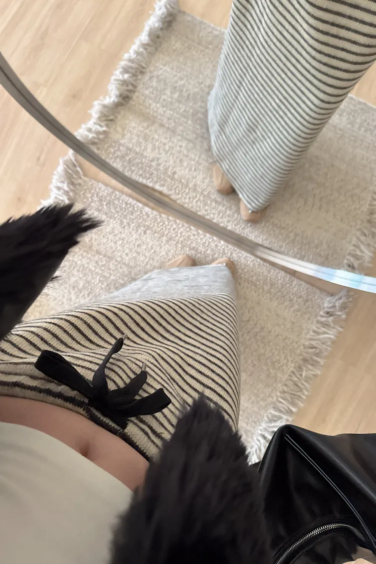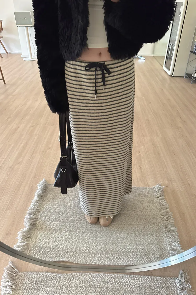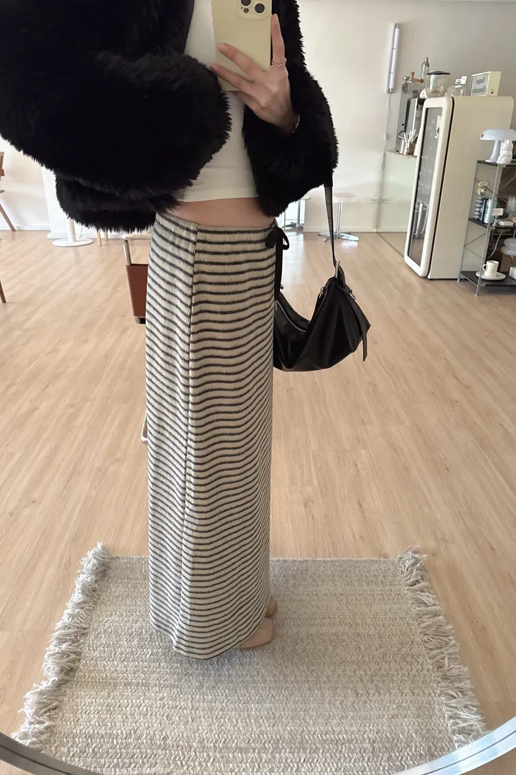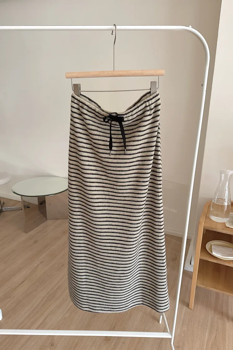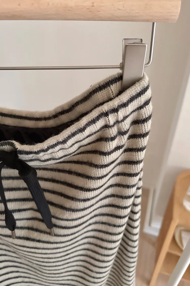 秋冬🍁條紋針織綁結長裙,米灰(NG瑕疵品出清)