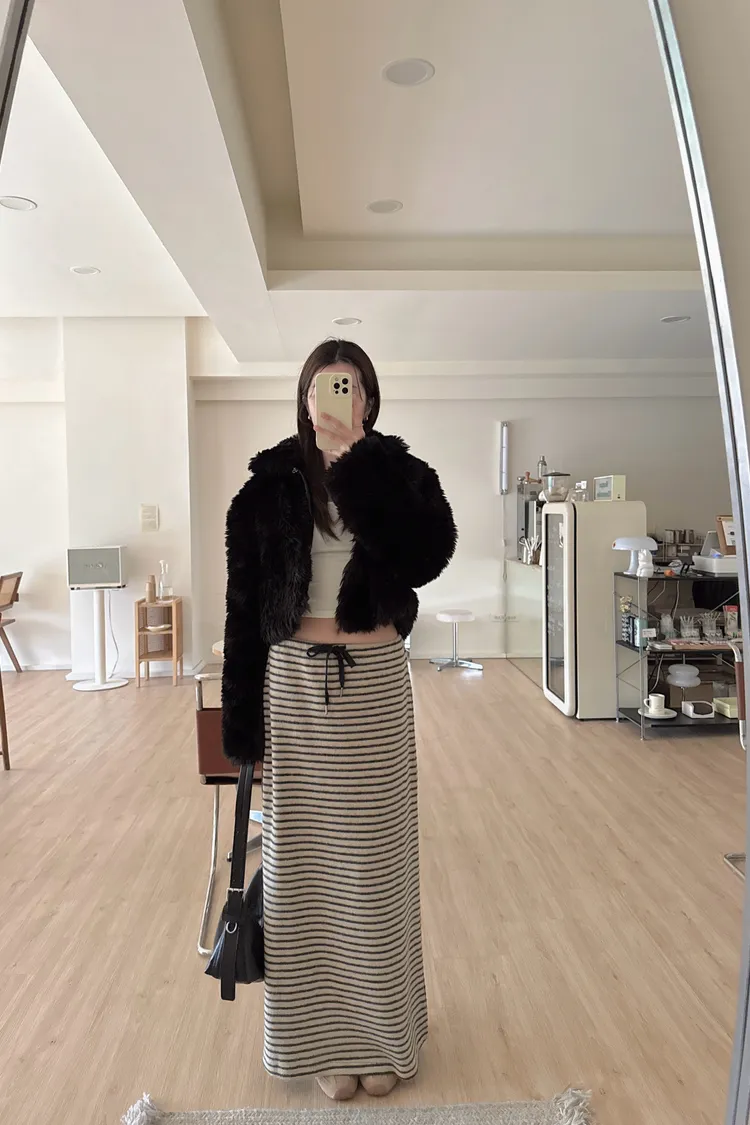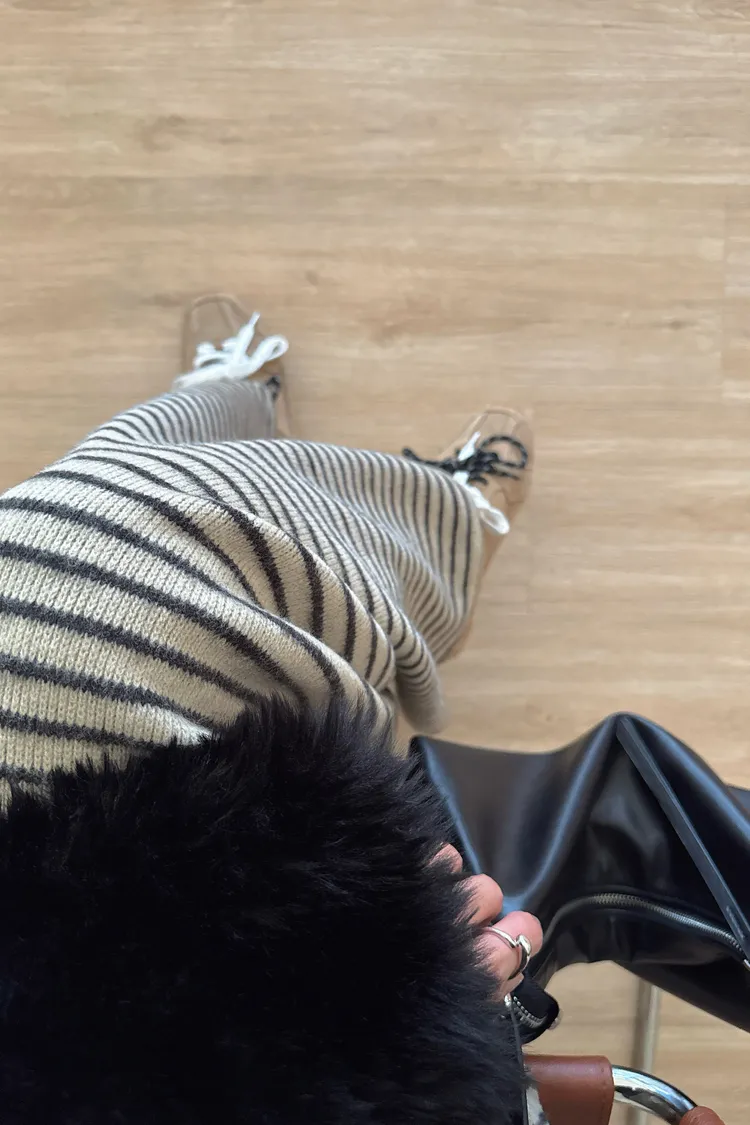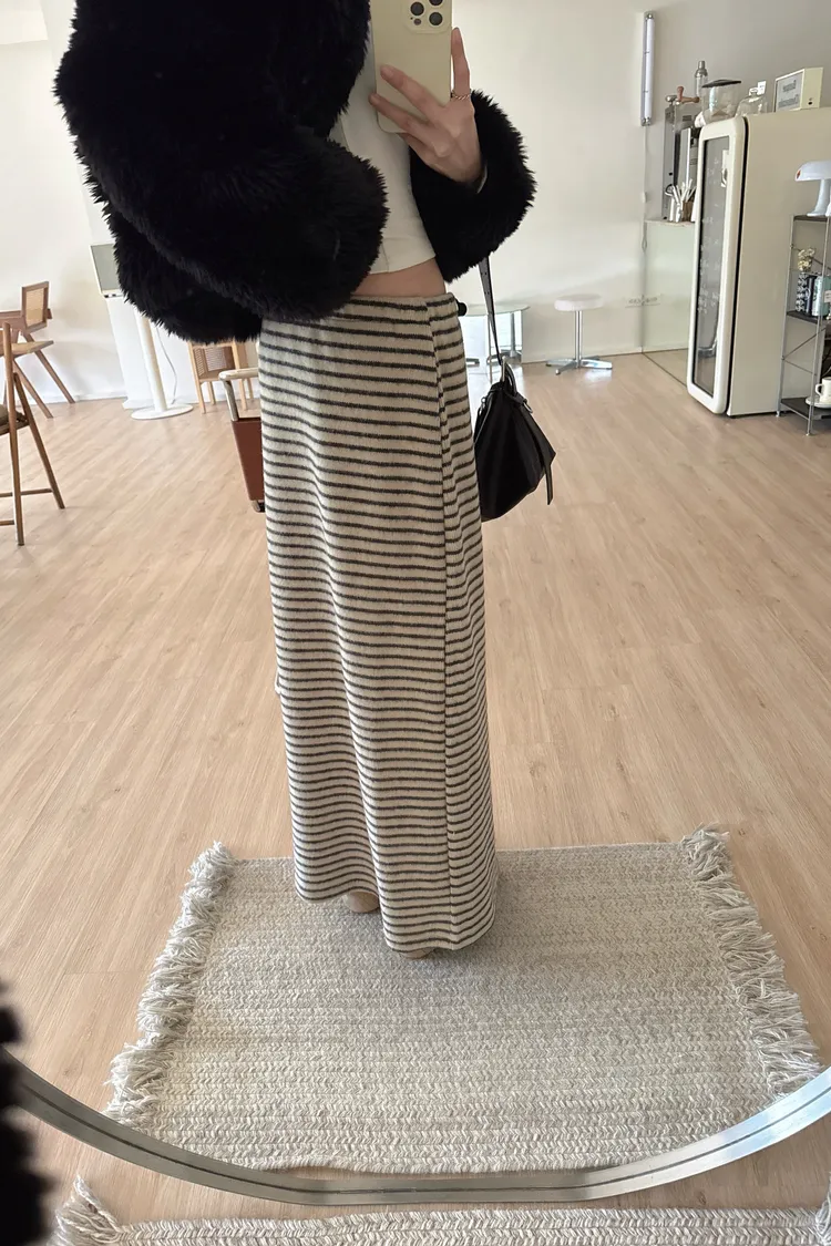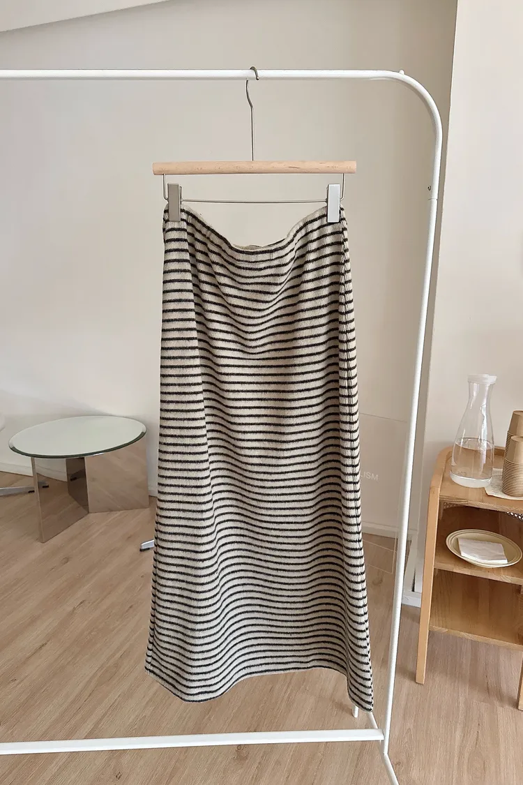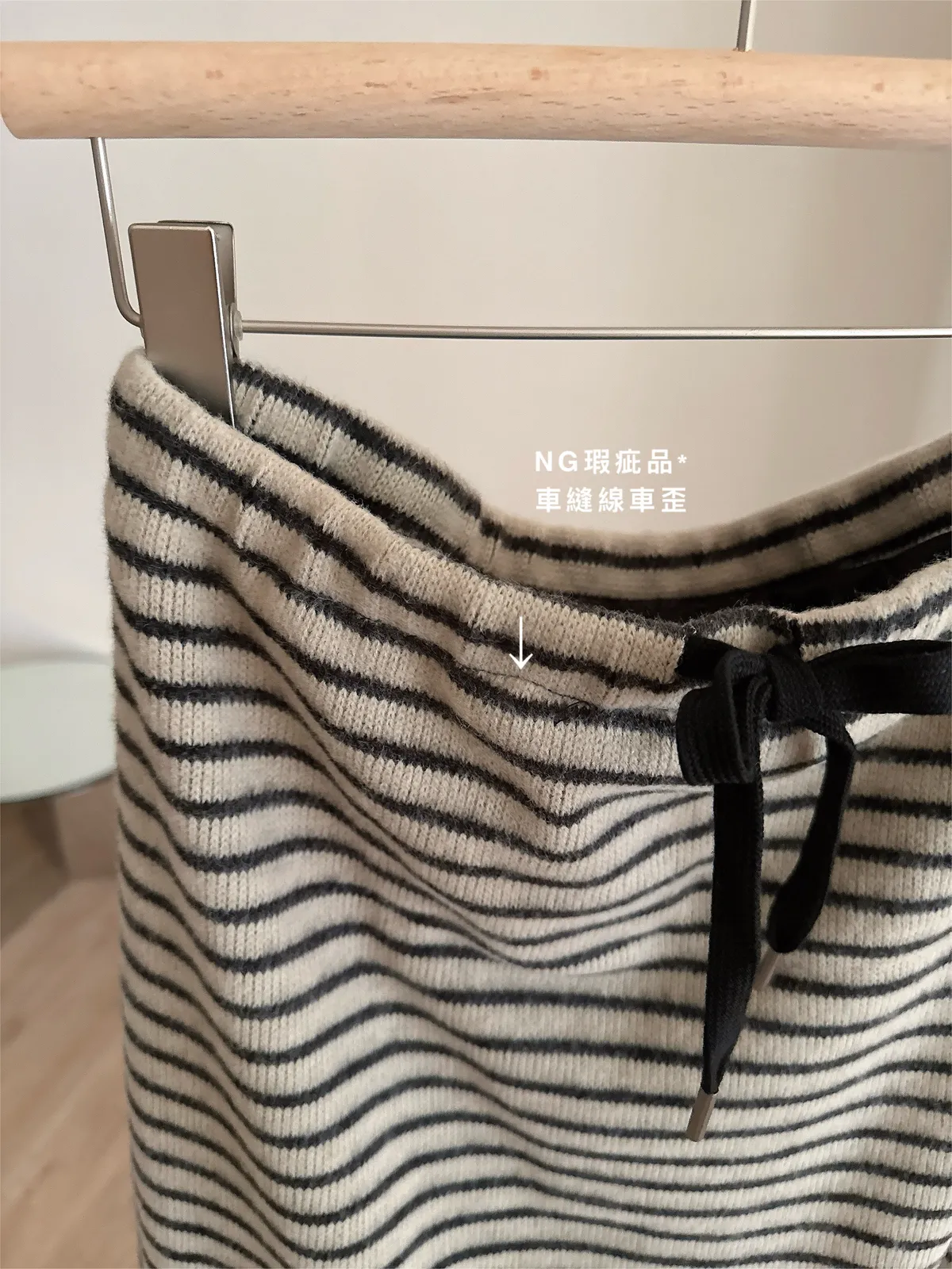 秋冬🍁條紋針織綁結長裙,米灰(NG瑕疵品出清)