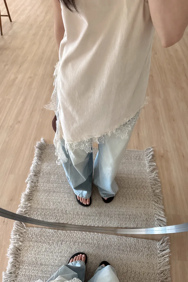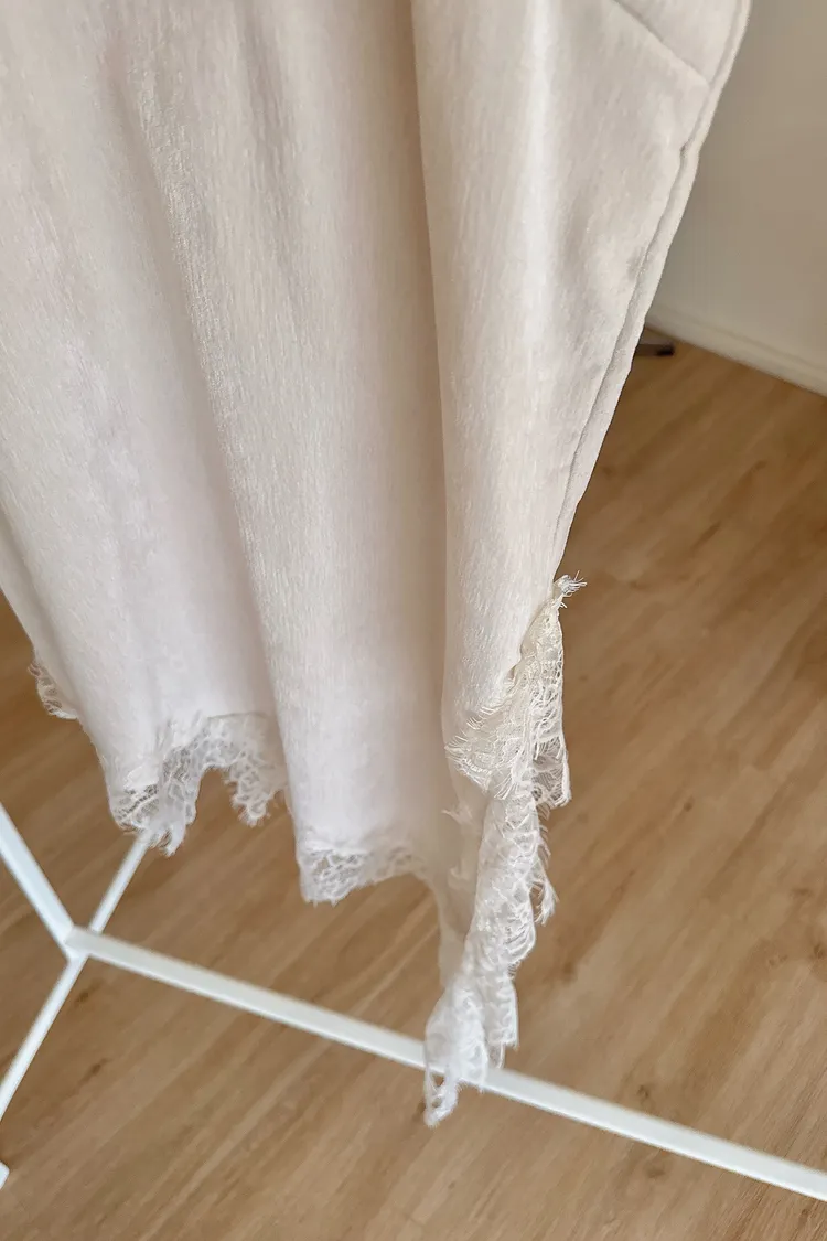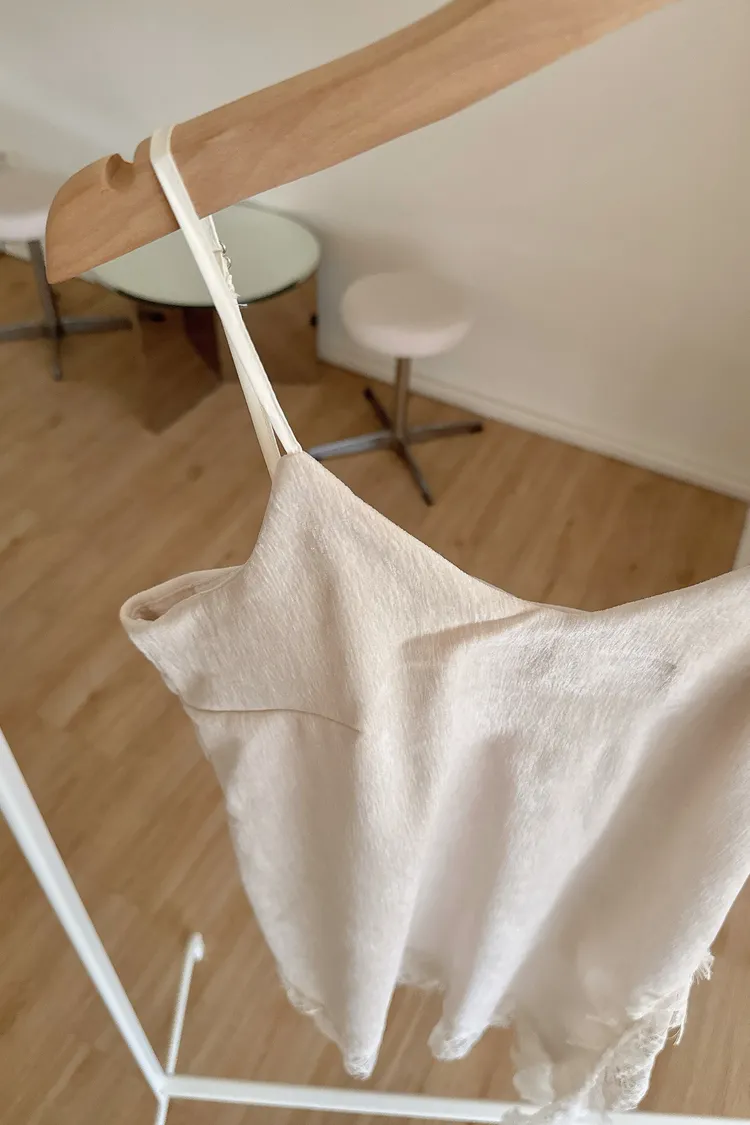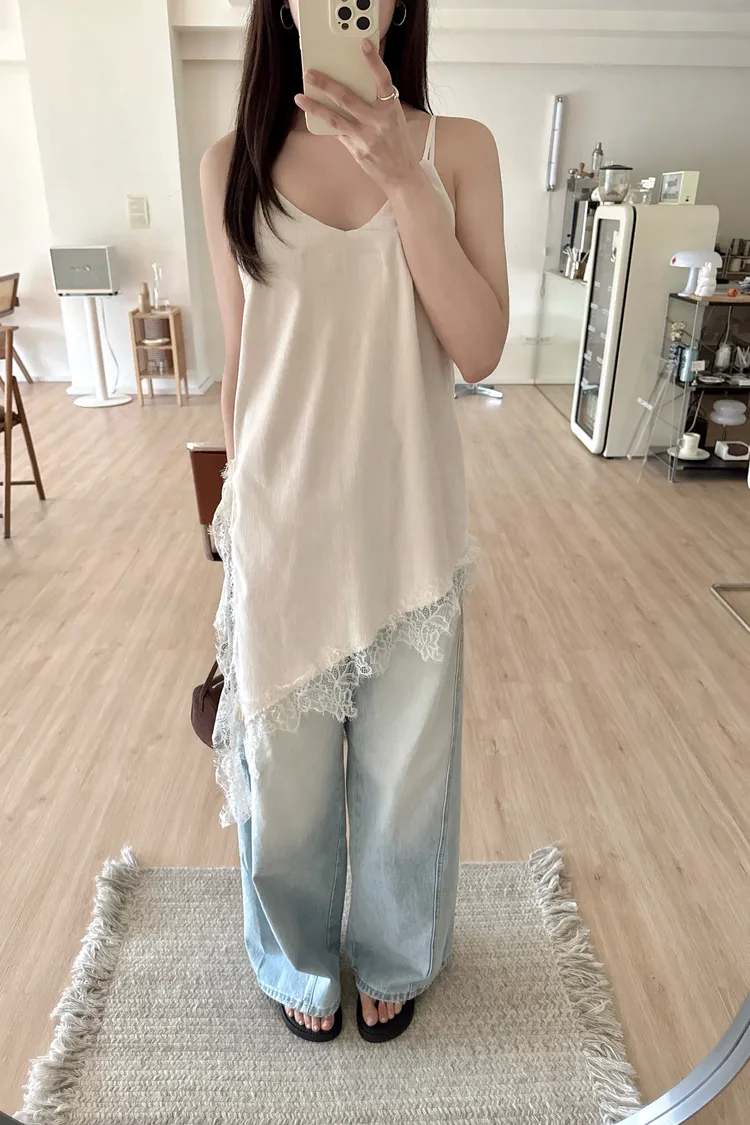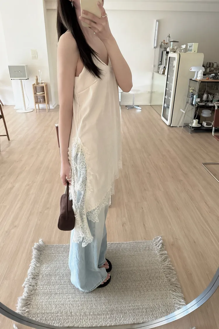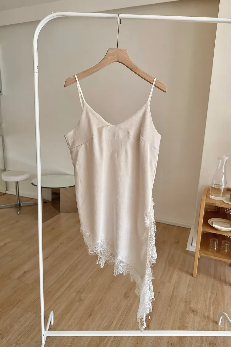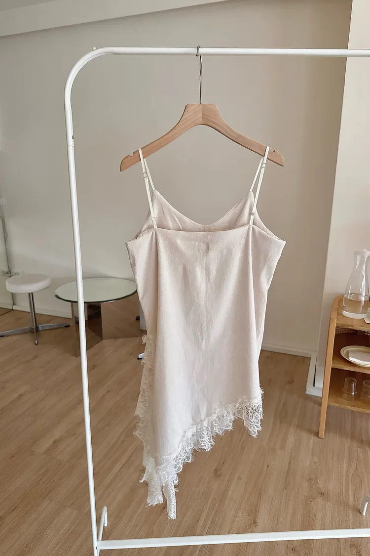 春🤍細肩不規則絲絨蕾絲短洋,杏