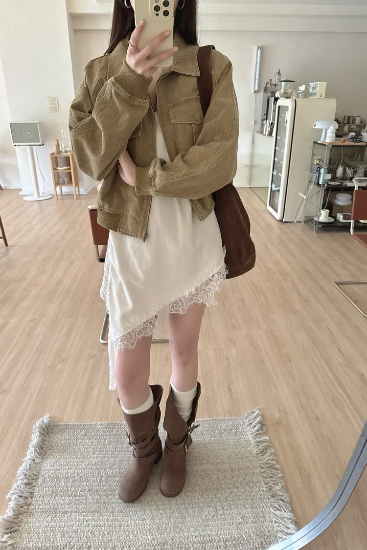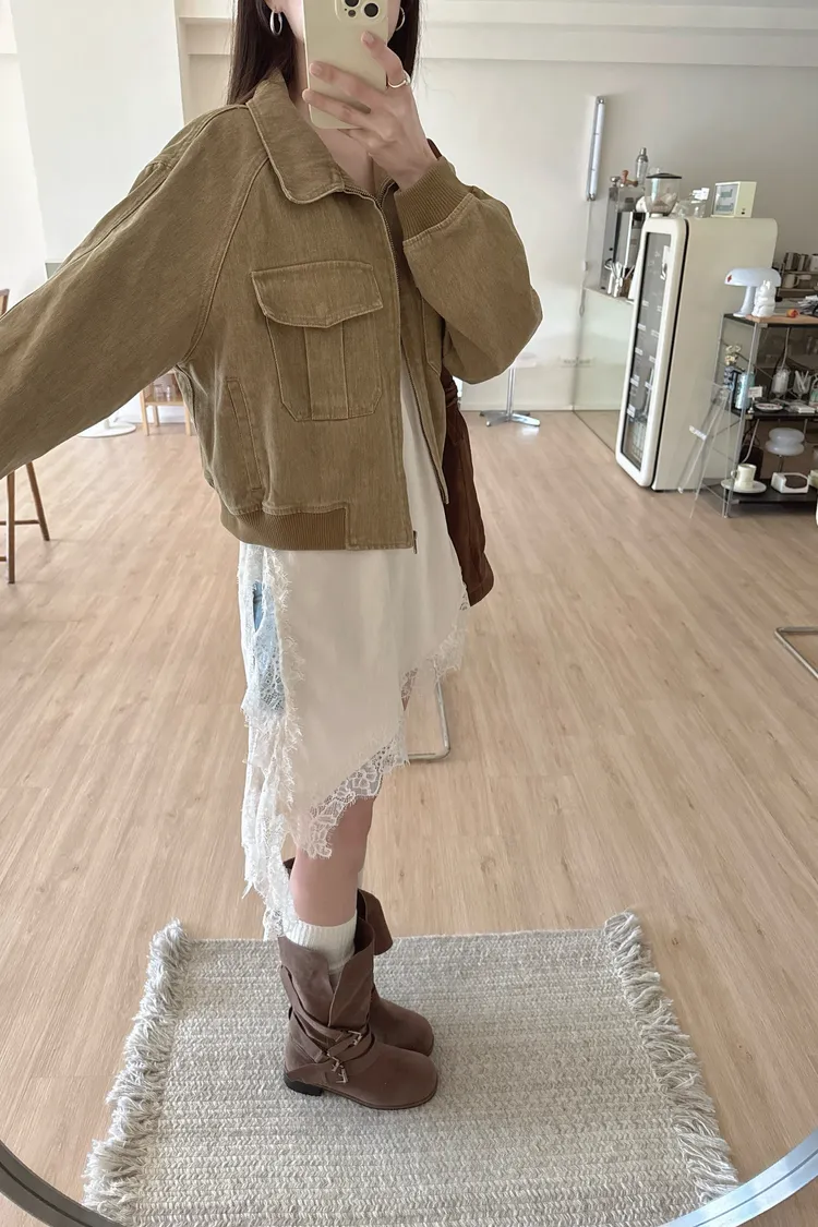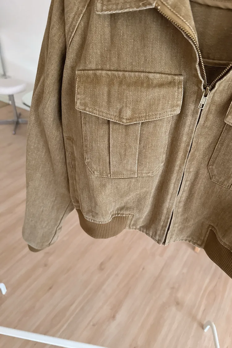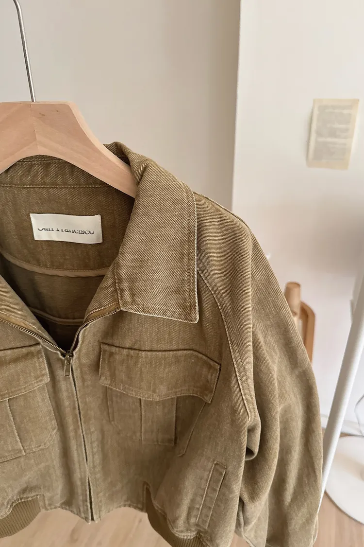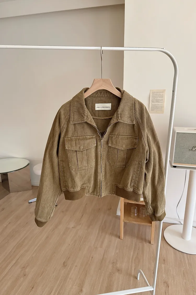 春夏🤍水洗感工裝牛仔外套,卡其