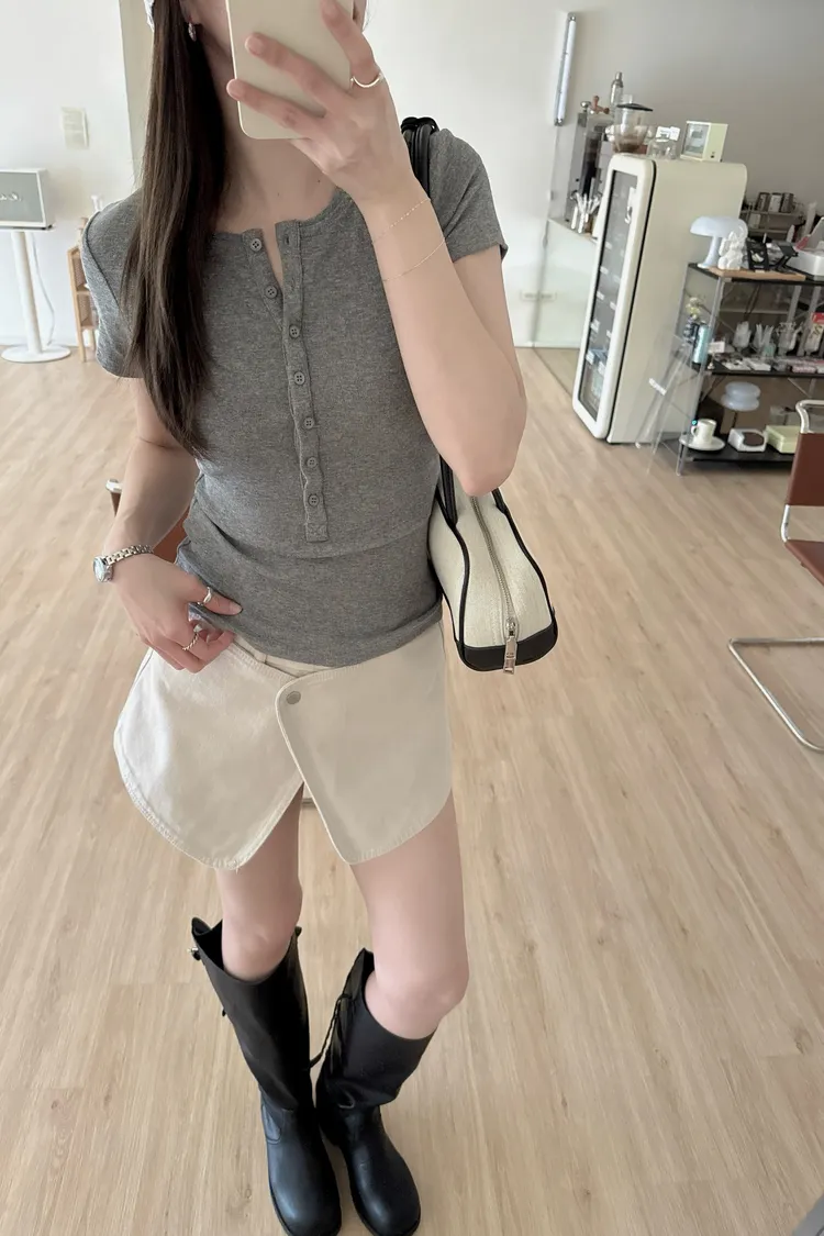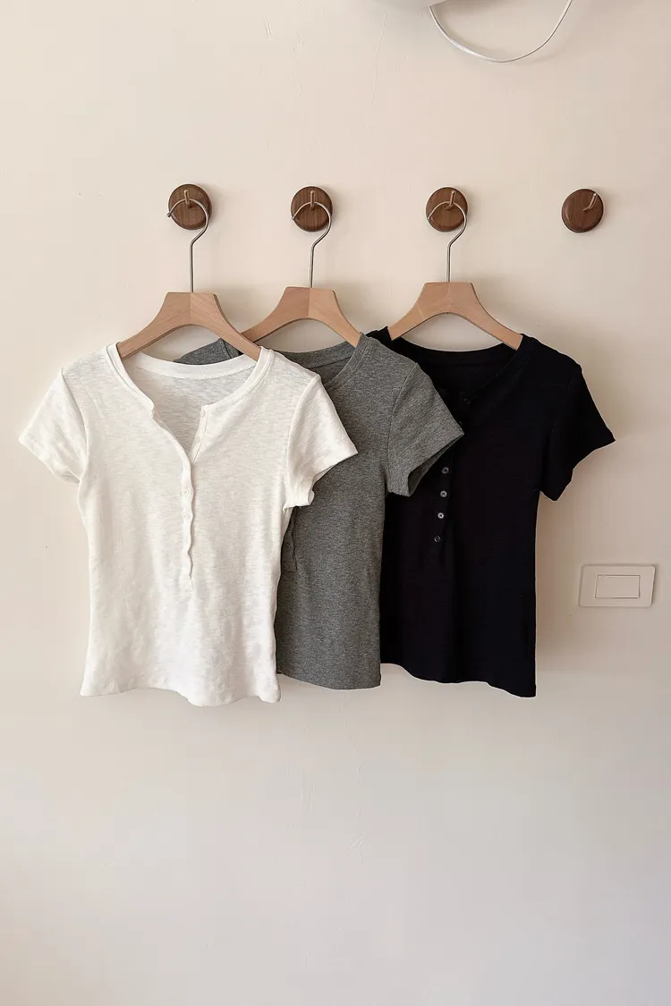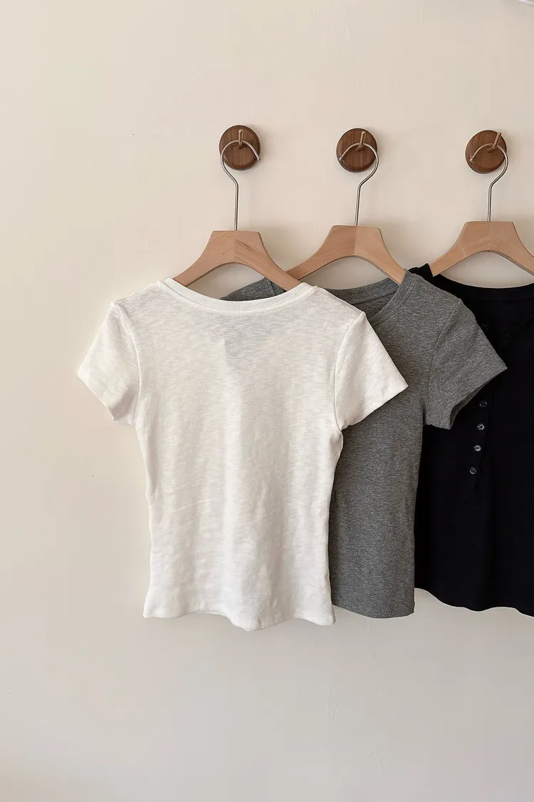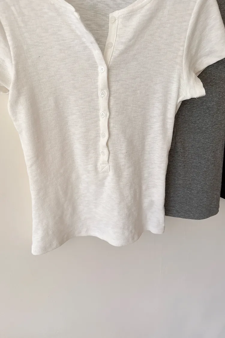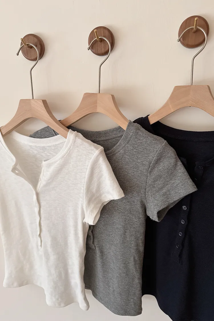春夏🤍螺紋棉開釦上衣,灰/深藍/白