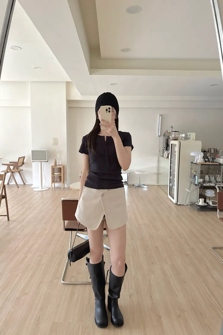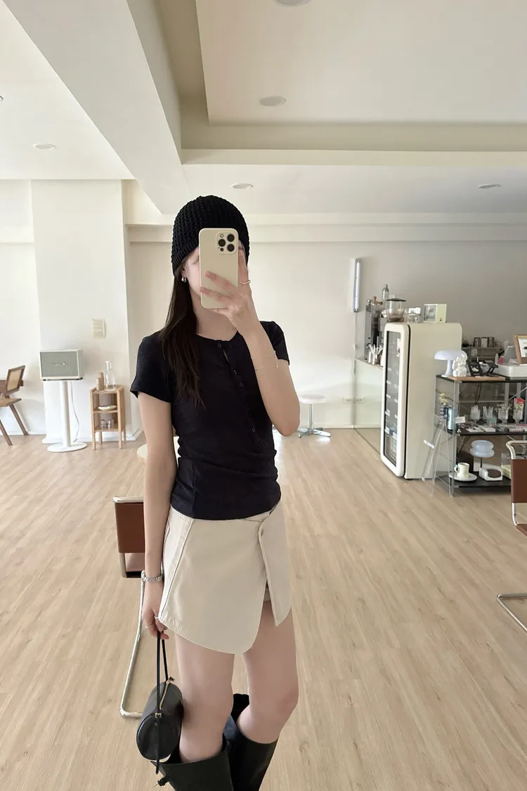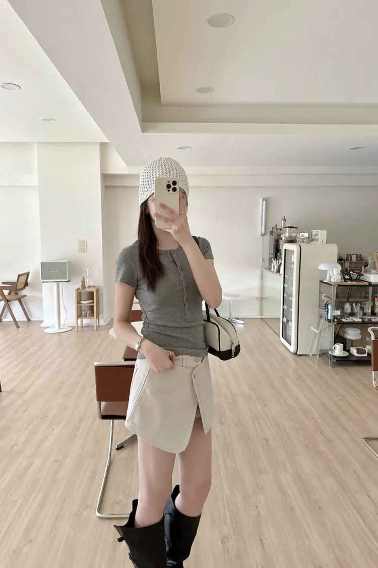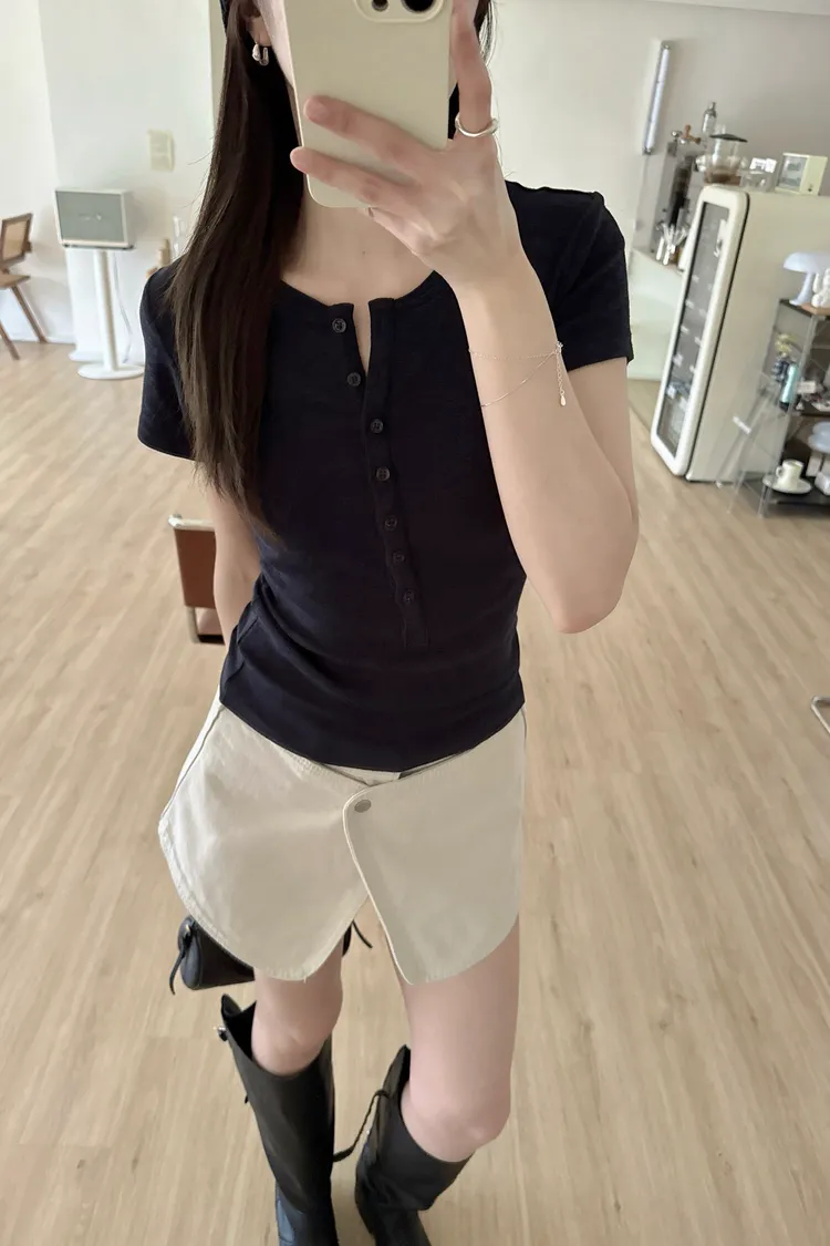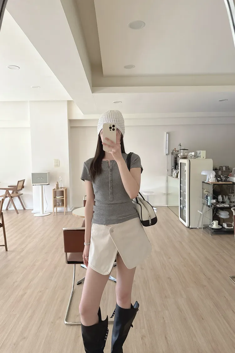 春夏🤍螺紋棉開釦上衣,灰/深藍/白