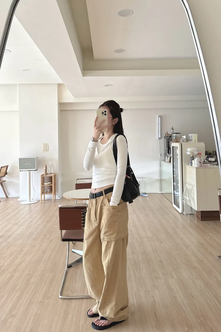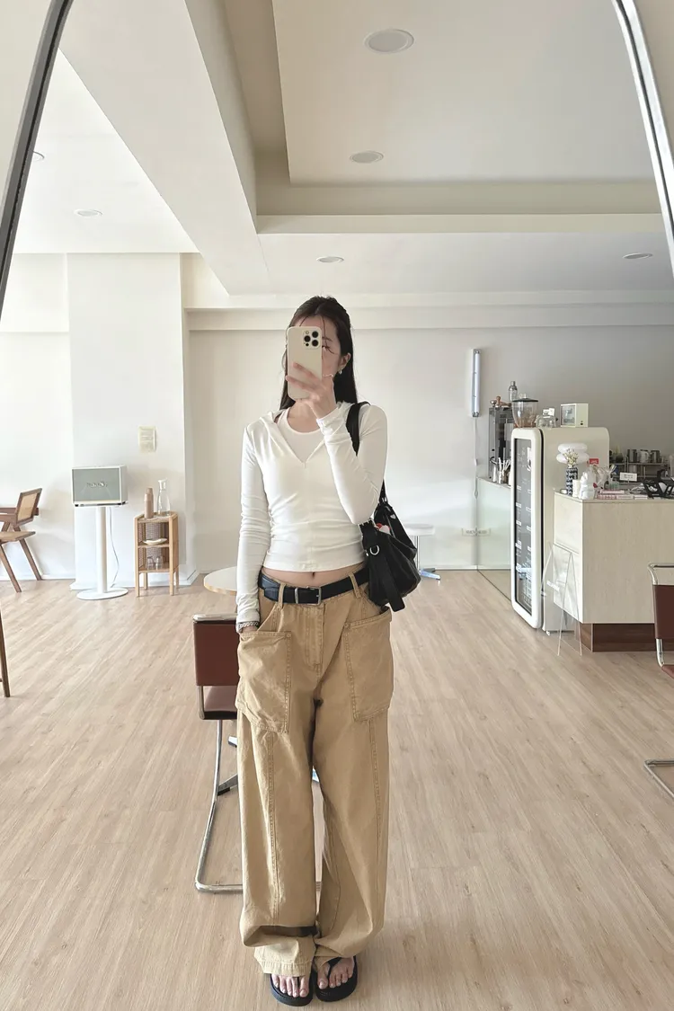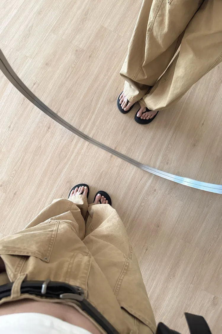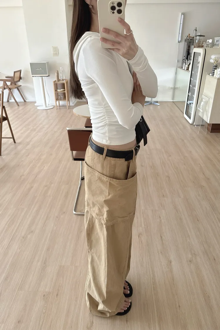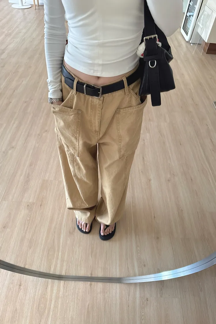 這款想穿低腰感覺照片拍攝穿著M號,腰寬大/需繫皮帶