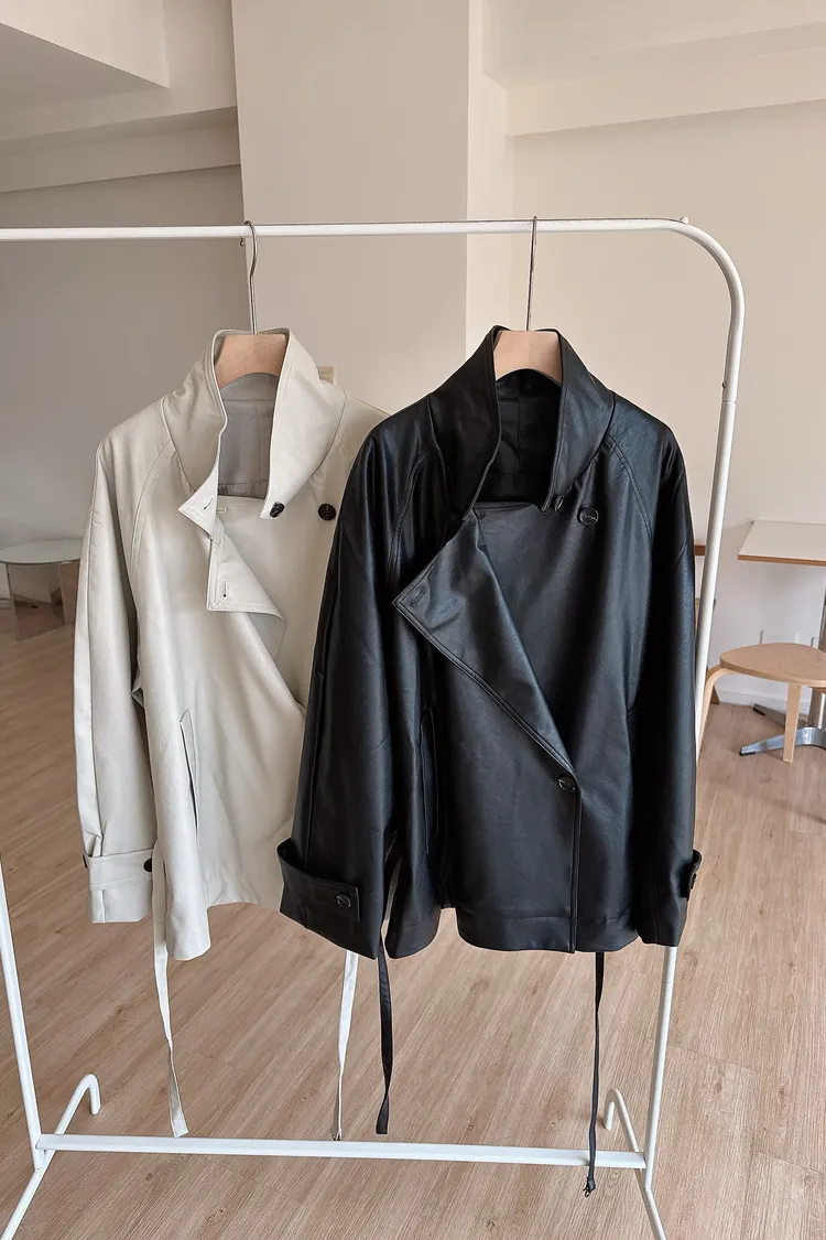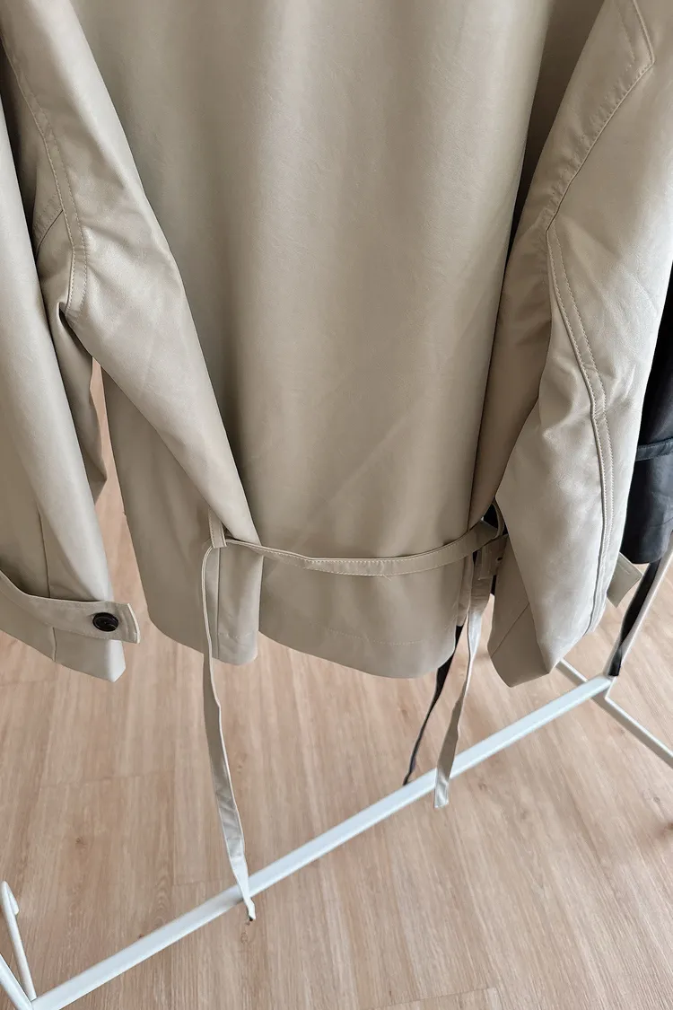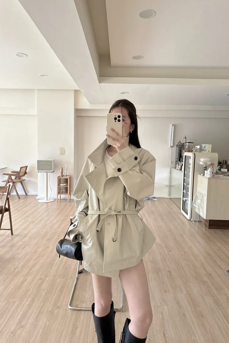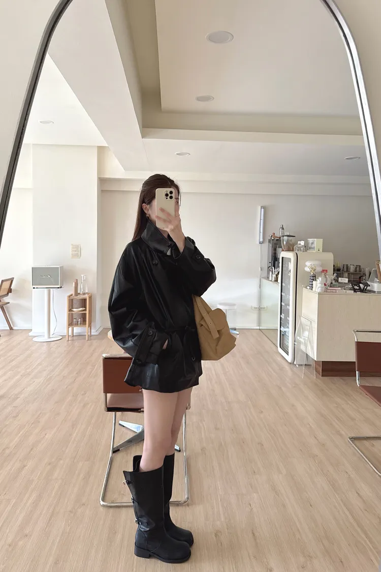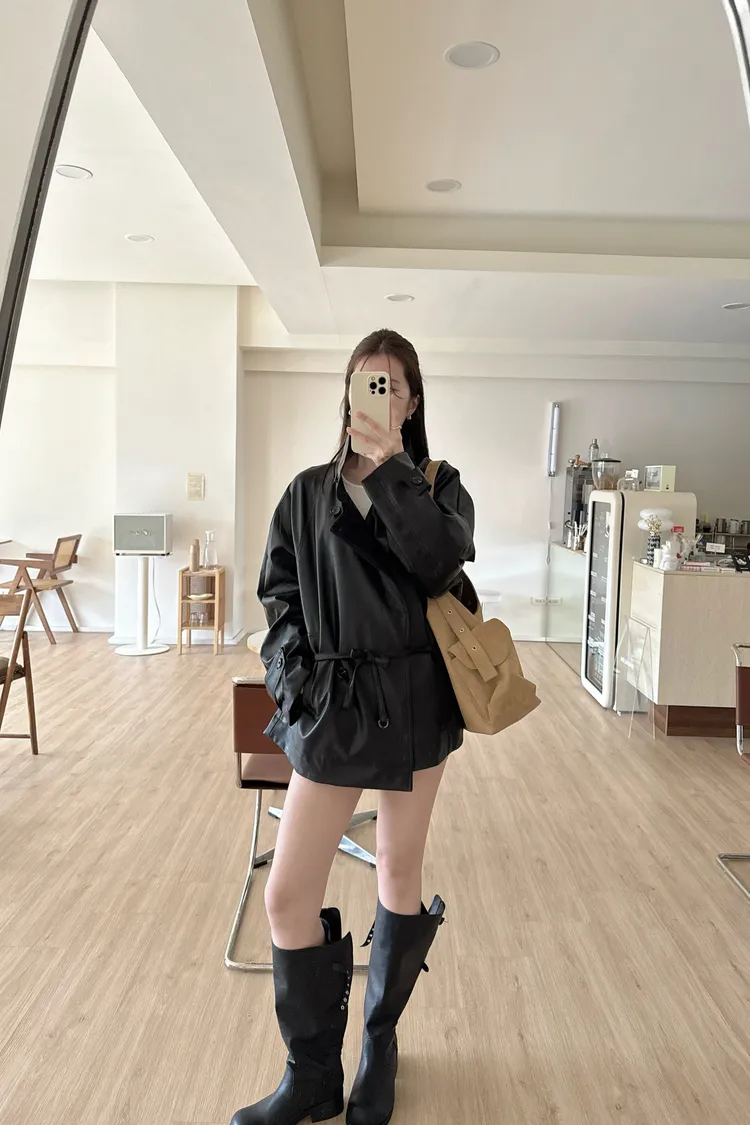 春🤍慵懶附帶皮革風衣,黑/杏