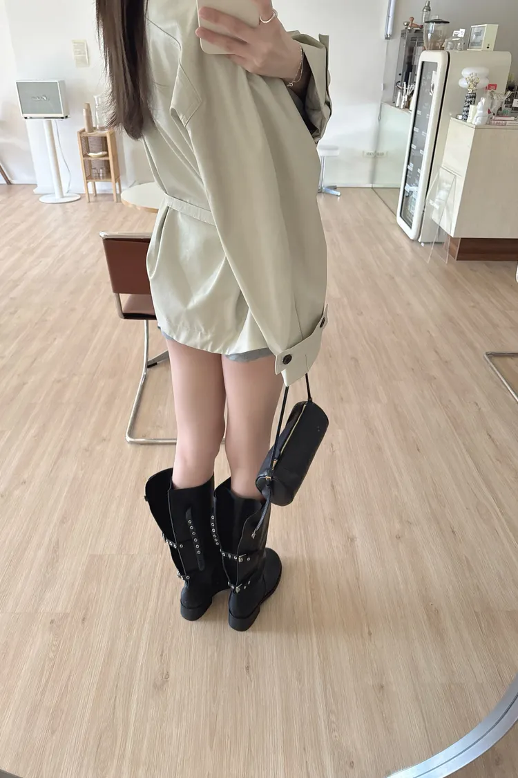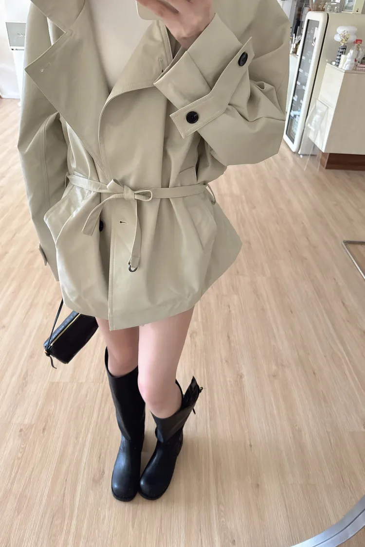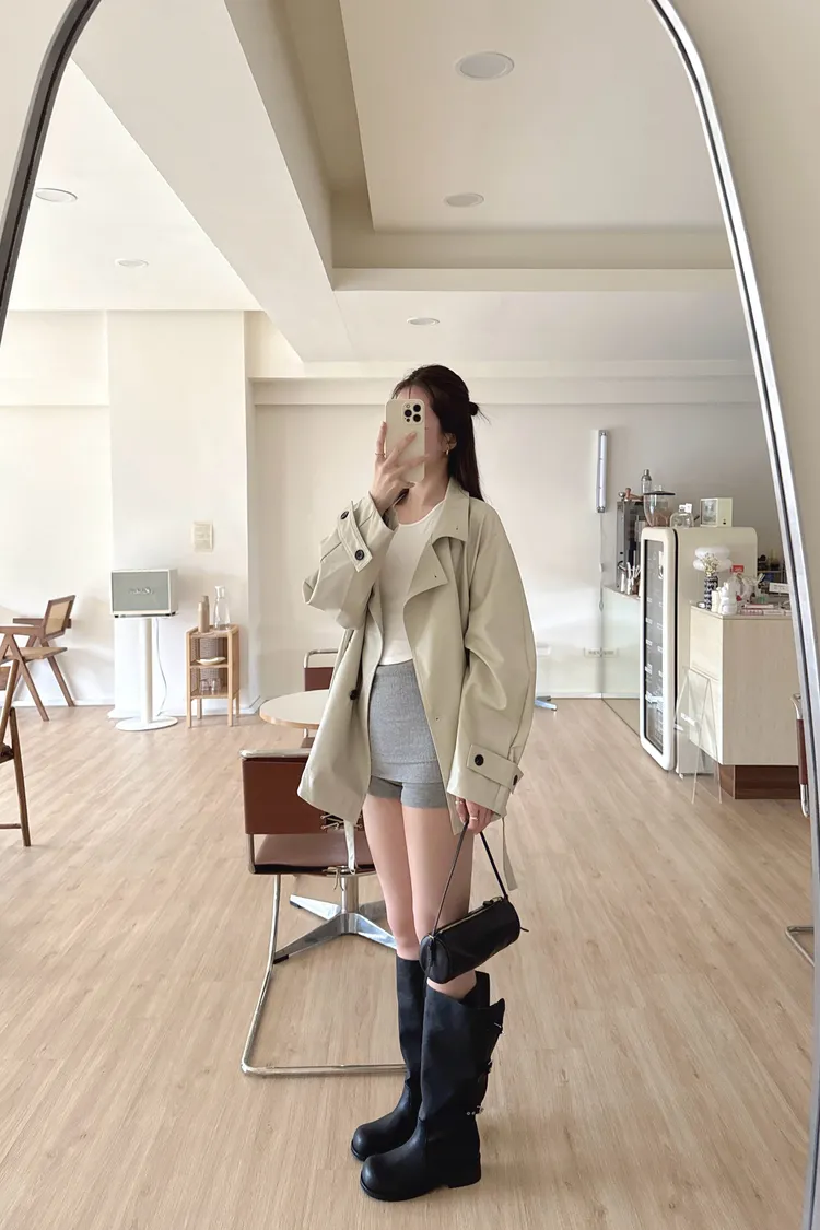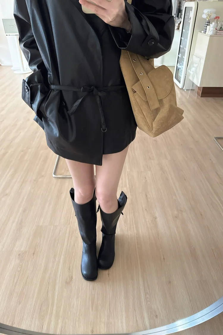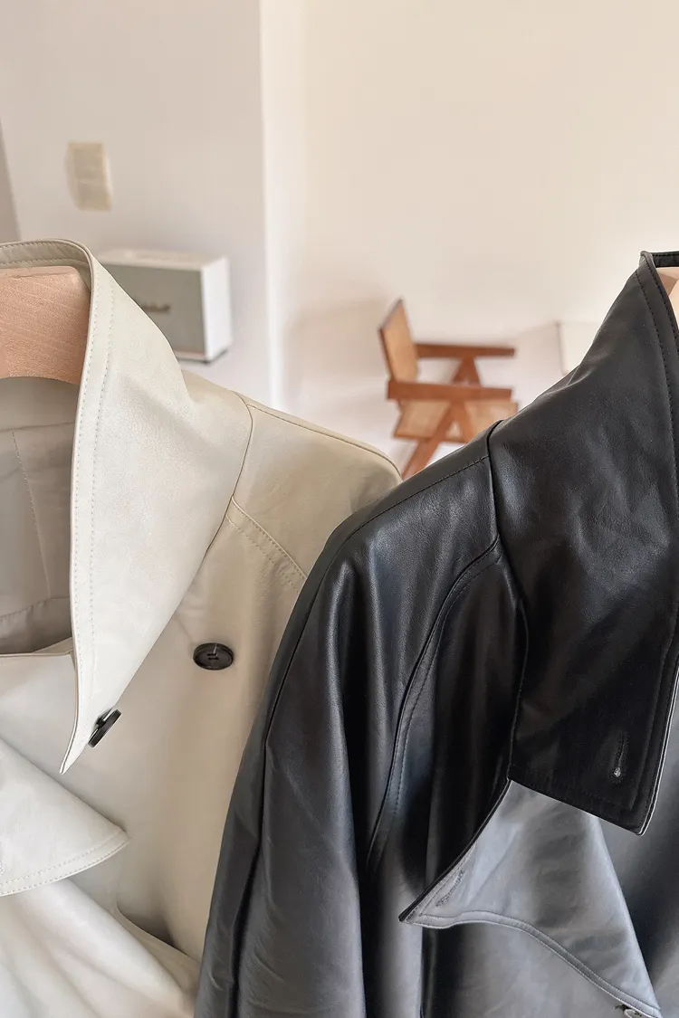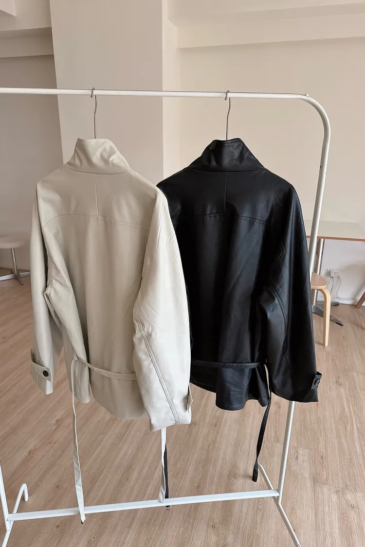 春🤍慵懶附帶皮革風衣,黑/杏